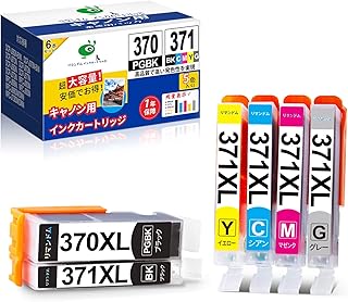 Canon キャノン BCI-371XL (BK/C/M/Y/GY) 370XL インクカートリッジ 互換インク 大容量 6色 マルチパック【対応機種】TS9030 TS8030 MG7730F MG6930 MG7730 (6本セット)