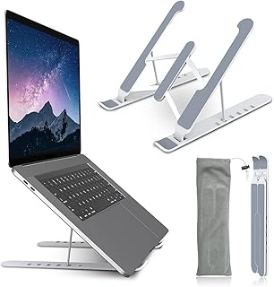 Zeshbit ノートパソコンスタンド ノートpc スタンド ラップトップスタンド タブレットスタンド iPadスタンド 人間工学設計 無段階高さ調整可能 姿勢改善 腰痛 猫背解消 折りたたみ式 滑り止め アルミ合金製 放熱性 軽量 Macbook Air/Macbook Pro/iPad Pro/Notebooks/液タプなど17インチまでに対応 在宅勤務 オンライン授業 (グレー)
