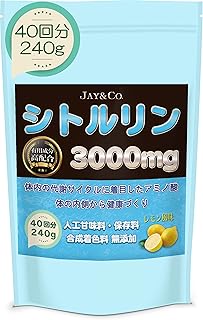 JAY&CO. 最高水準 1回当たり3000mg 飲みやすい シトルリン パウダー (無添加:人工甘味料, 保存料)国内製造 (レモン, 240g)