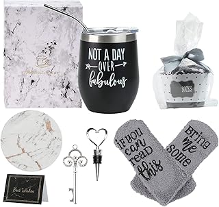 誕生日ギフトセット 女性用 Not a Day Over Fabulous タンブラー 父の日 面白いクリスマスギフトアイデア 女性 お母さん 妻 男性 夫 父 姉妹 叔母 友人 12オンス 蓋付きタンブラー (ブラック)